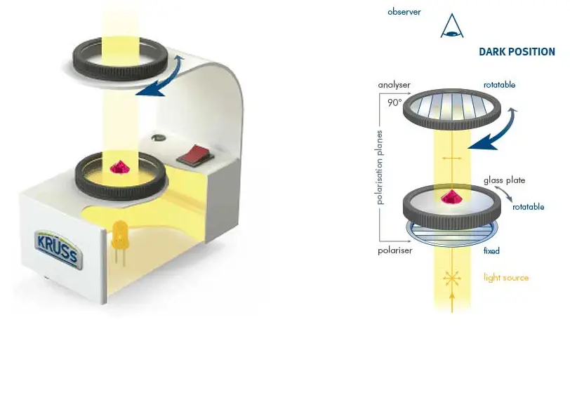 और यदि दोनों लेंस अलग अलग दिशा मे हो उसके बाद भी यदि प्रकश आर पार चला जाये इसका अर्थ है स्टोन D R है यानी double refractive है.